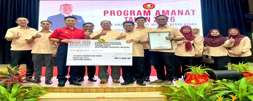 12/1/2026 (Isnin) – Menghadiri Program Amanat YAB Dato Seri Menteri Besar Kedah Darul Aman, kepada seluruh Pentadbiran Tanah Negeri Kedah Darul Aman, Tahun 2026, yang turut dihadiri oleh barisan Ahli Majlis Mesyuarat Kerajaan Negeri Kedah Darul Aman, para Pegawai Daerah, merangkap Pentadbir Tanah Daerah, para Penolong Pentadbir Tanah Daerah dan seluruh Kakitangan di Pejabat Tanah seluruh Daerah di Negeri Kedah Darul Aman. Tahniah diucapkan kepada seluruh Kakitangan Pejabat Tanah Daerah Kulim, yang telah memenangi Kutipan Hasil Tertinggi sepanjang Tahun 2025, bagi Kategori Daerah Besar. Semoga dengan penganugerahan ini, seluruh Warga Pentadbiran Tanah di Kulim akan berusaha lebih gigih lagi untuk kejayaan bagi Tahun 2026.